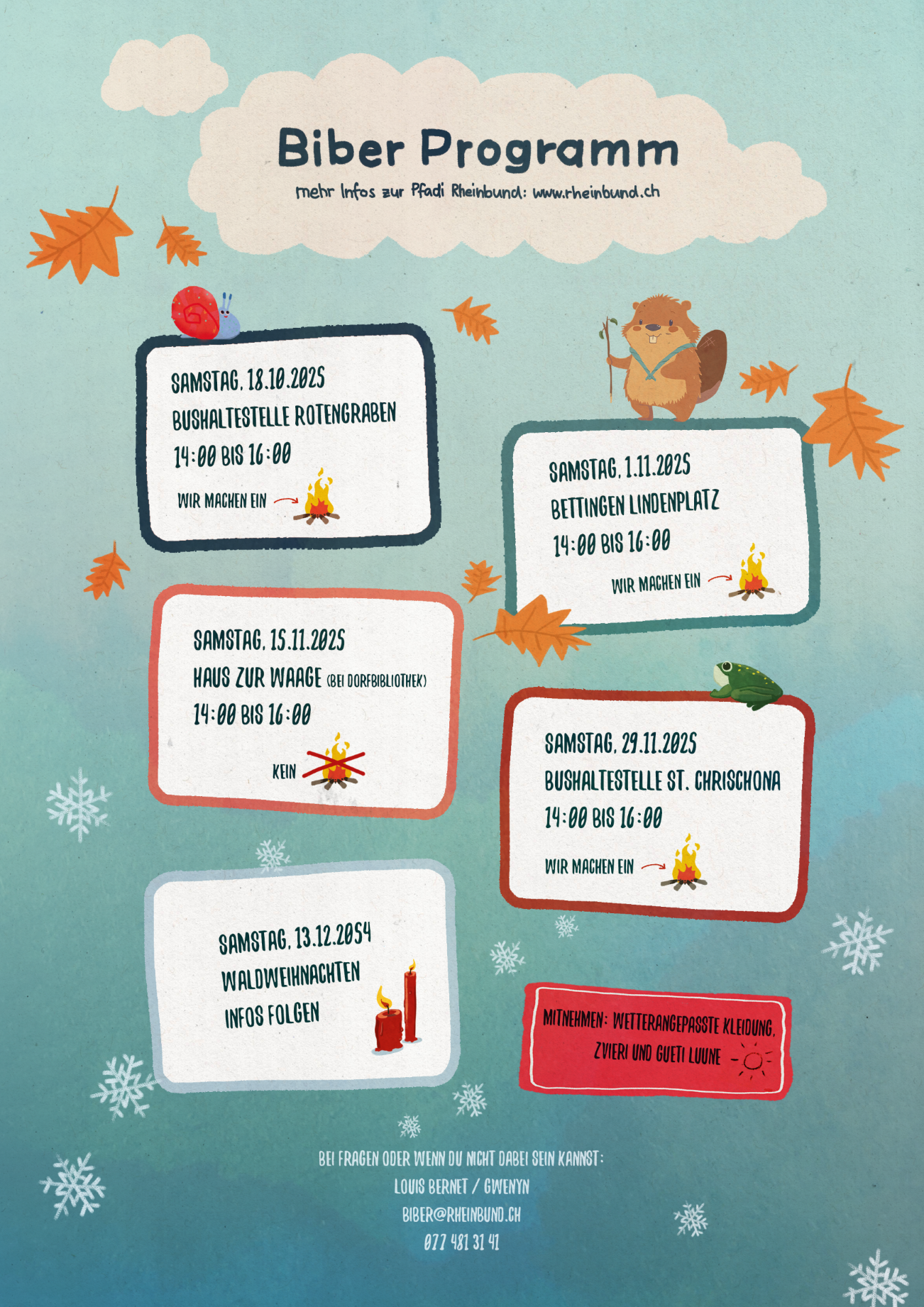 In der Bibergruppe lernen die Teilnehmer selbstbewusst und selbstkritisch zu sein. Die Teilnehmer (Biber) haben schon viel Erfahrung mit allen Bewegungsgrundformen. Wir erweitern diese beim Spielen, Herumtollen und Basteln immer wieder. In der Gruppe ist uns wichtig, dass wir anderen Kindern begegnen und sie auch respektieren. Uns ist wichtig, dass die Kinder kreativ sind und auch umweltbewusst handeln. Wir tauchen in Geschichten und Fantasiewelten ein und identifizieren uns mit den Hauptfiguren.