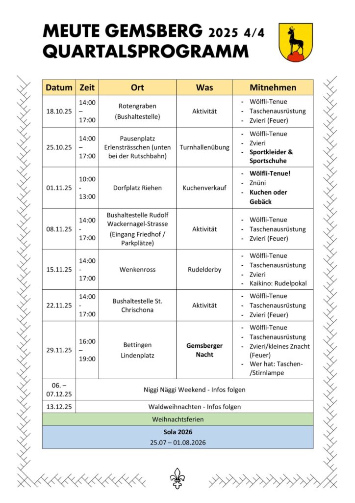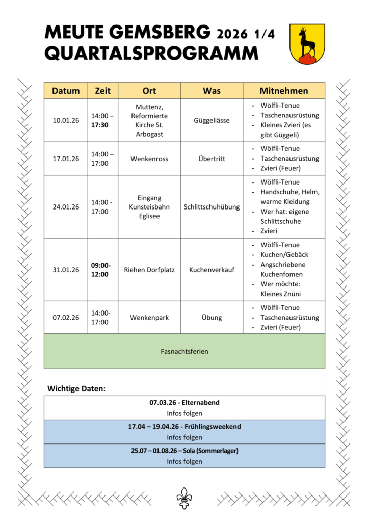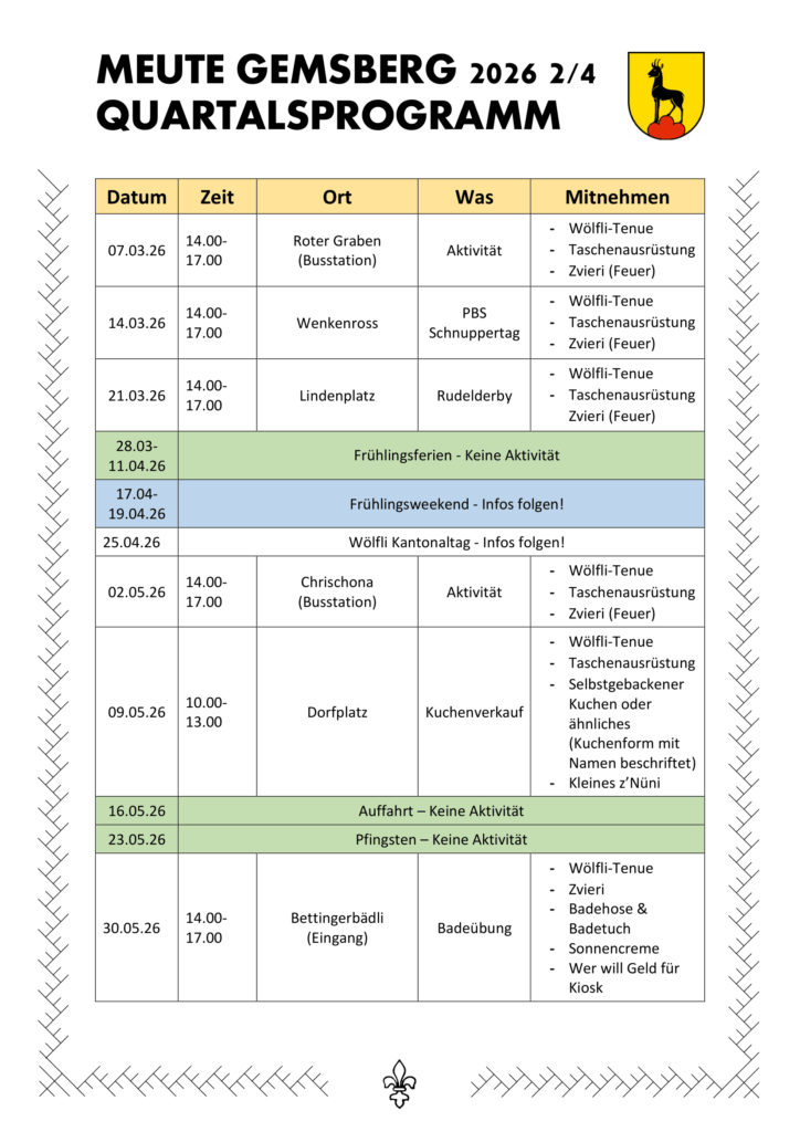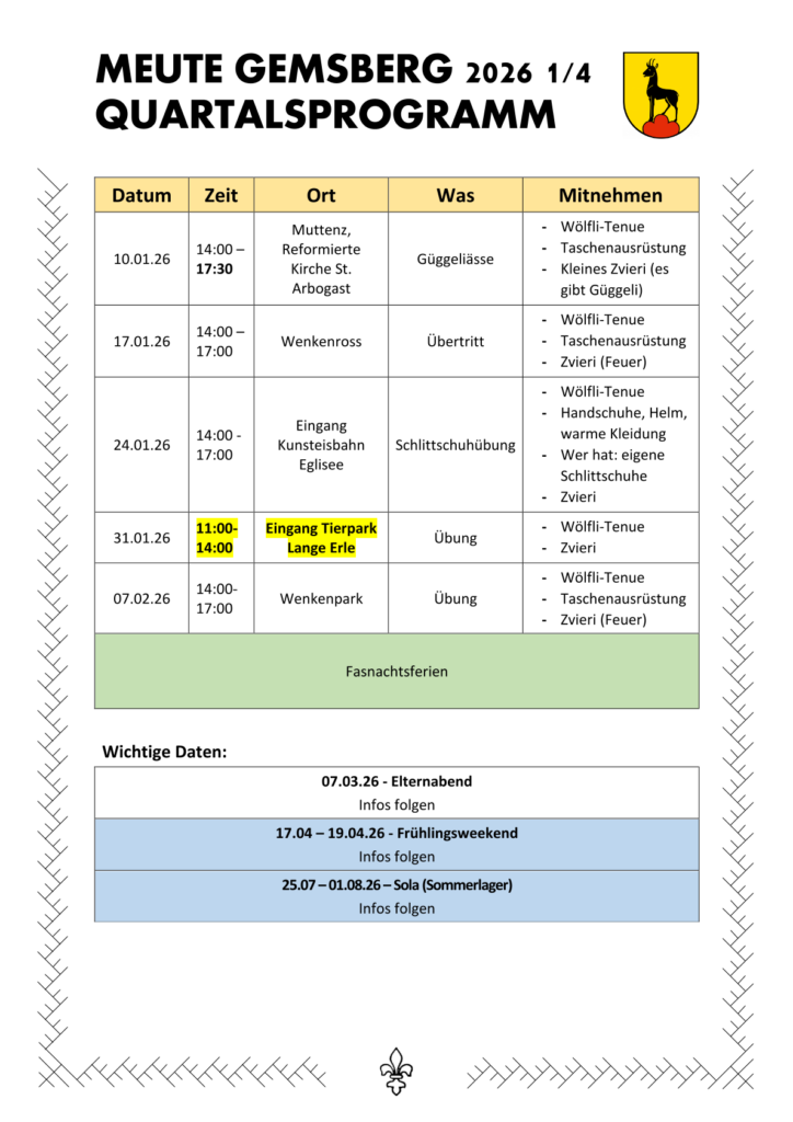 In der Wolfsmeute Gemsberg können Jungs von 6 – 11 Jahren jeden Samstagnachmittag rumtoben, neue Freunde kennenlernen, mit ihnen spielen und draussen in den Wäldern und Wiesen auf Schatzsuche gehen oder in tollen Hauslagern fantasievolle Welten entdecken.