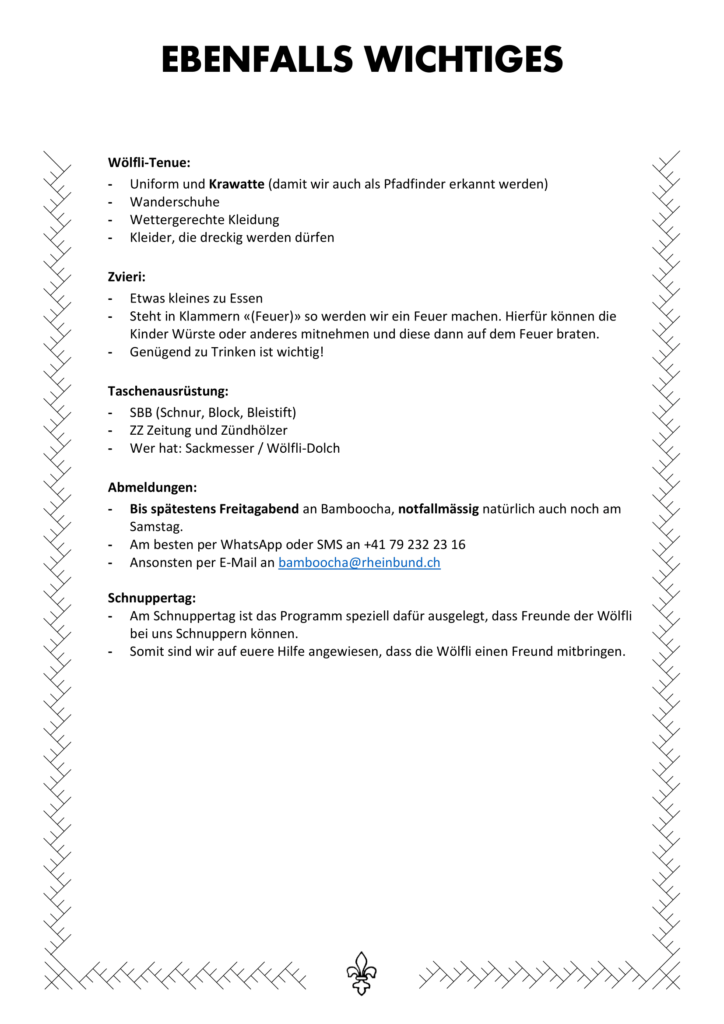 Die blaue Rheinbundkrawatte, sowie eine Wölfli-Uniform kann im Cenci Sportgeschäft in Riehen, im Pfadilädeli im Kellergässlein in Basel oder auf www.hajk.ch gekauft werden.